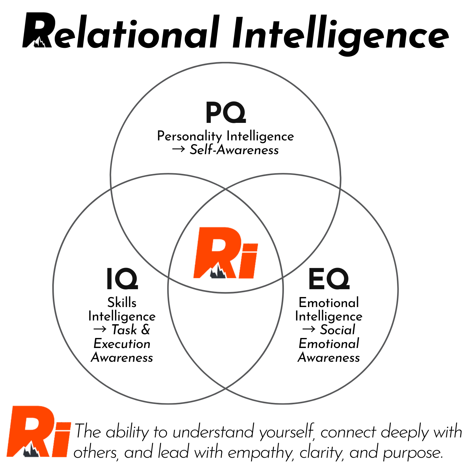 Relational Intelligence, or RQ, is the intersection of IQ, PQ, and EQ. It’s the ability to understand yourself, connect deeply with others, and lead with empathy, clarity, and purpose. When students build RQ, they are better equipped to navigate relationships, regulate emotions, and make decisions that strengthen trust instead of damaging it.